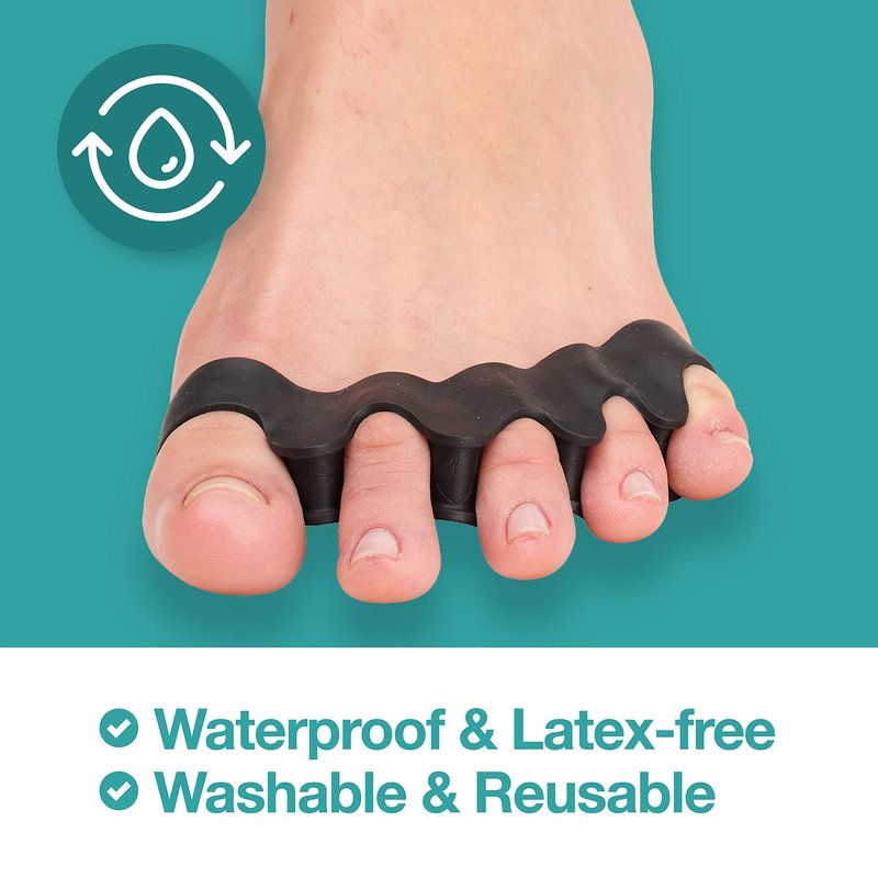 - Get Yours Today - Choose from one pair or two pairs of spreaders that can be worn on the left foot and the right foot to correct toes on both feet at the same time. Our latex free toe spreaders are available in blue, pink, black, beige and white. Purchase a pair today and enjoy the stress relieving benefits to your feet!