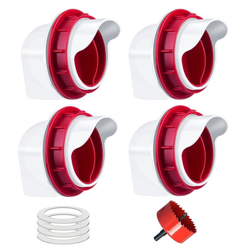 ZenxyHoC Chicken Feeders No Waste, DIY Automatic Poultry Feeder 4 Ports 1 Hole Saw with Covers Gravity Feed Kit for Buckets Barrels Bins Troughs