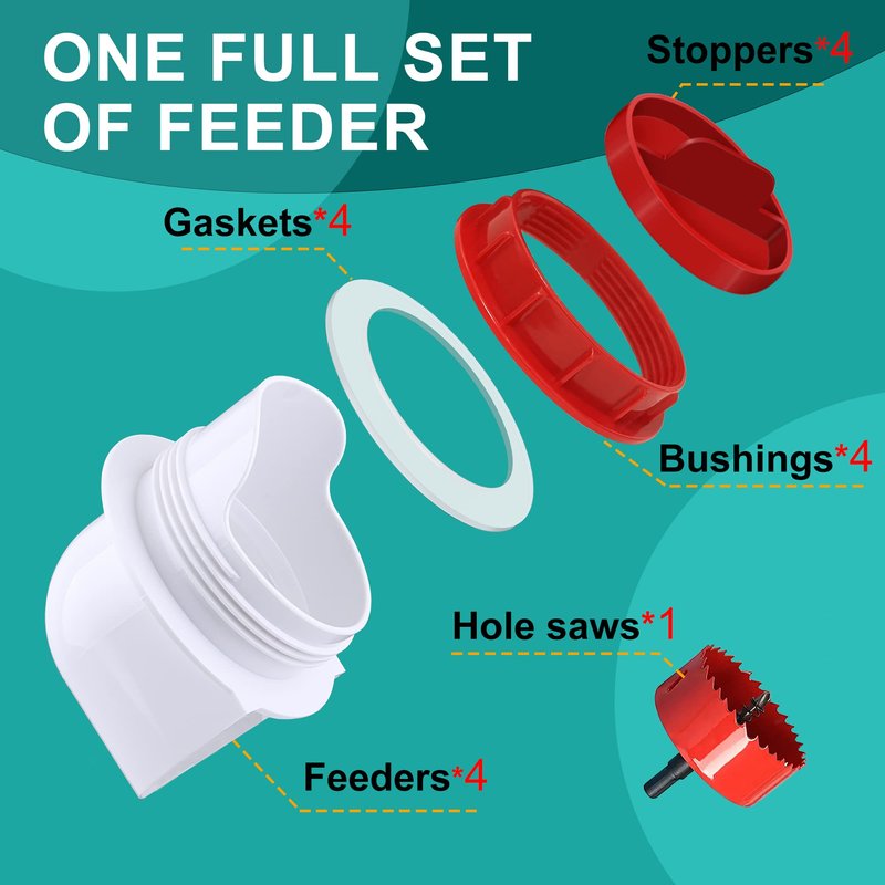 - Easy to install: Use the included hole saw and drill to turn any container into an automatic chicken feeder in minutes. Chicken feeders make it easier to keep your chickens happy and healthy