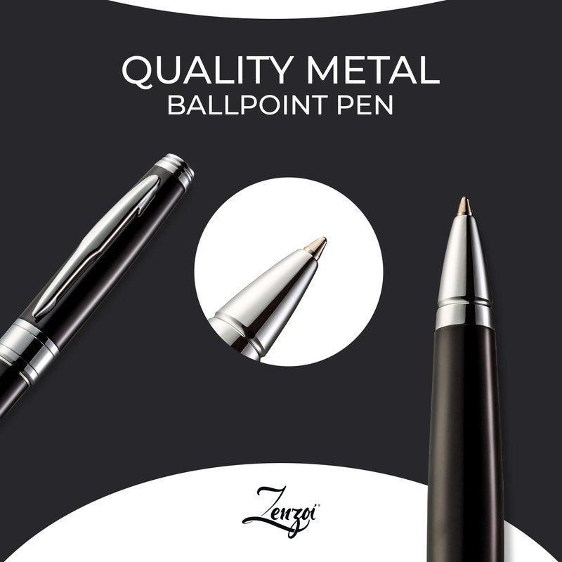 - THE ROYAL STANDARD IN PENMANSHIP- Created to cater to a highly demanding audience, the elegant ZenZoi Ballpoint Pen brings together finesse and functionality, into a timeless writing piece. Minimalistic design elements combine on a full metal body with a Black on Silver scheme, for the ultimate ZenZoi executive writing pen experience.