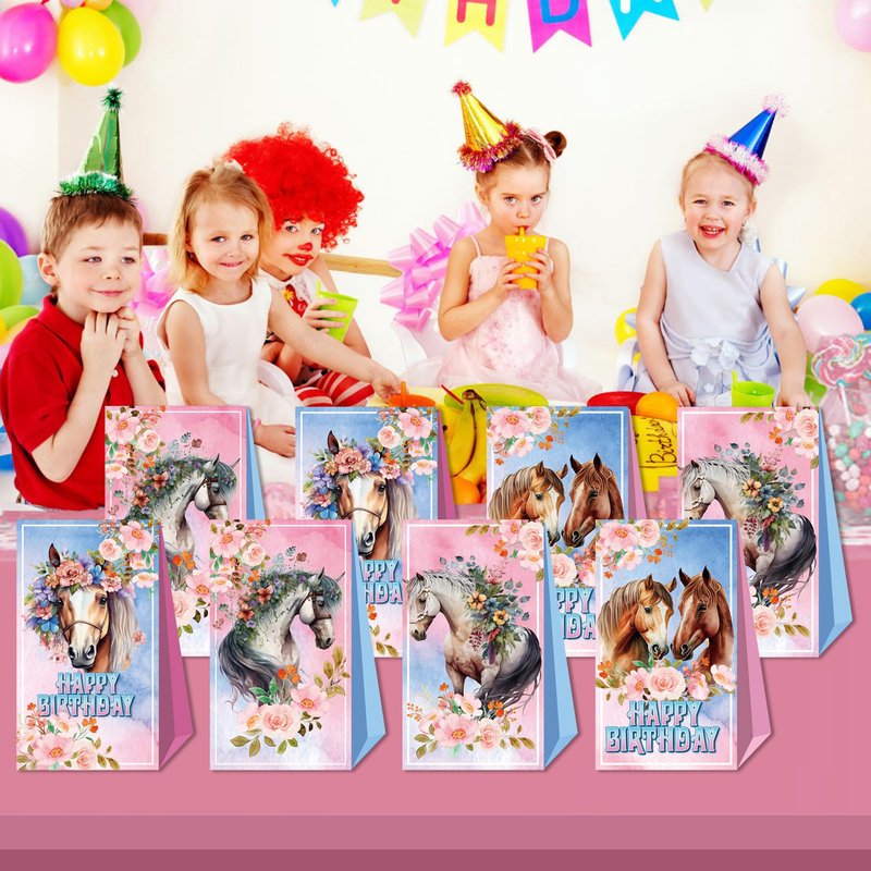 - 【Products Include】This pink horse party supplies includes 12 party gift bags in 4 different pink horse patterns, each paper bag size is 10.2in*4.7in, suitable for party theme gift bags, candy bags, party decoration bags.