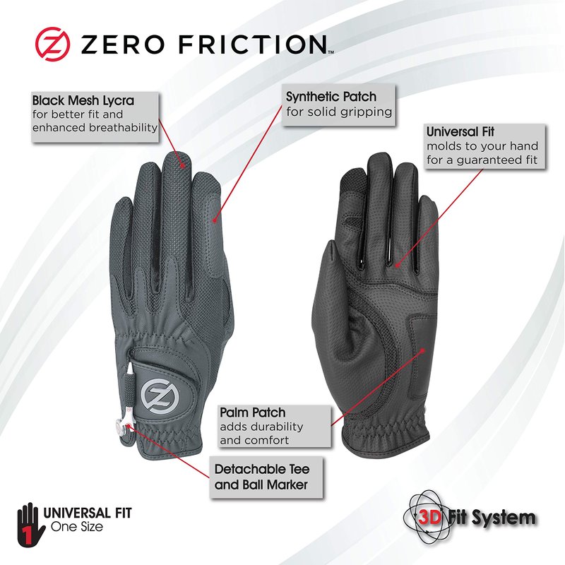 Zero Friction Women's Compression-Fit Synthetic Golf Gloves, Universal Fit, Black