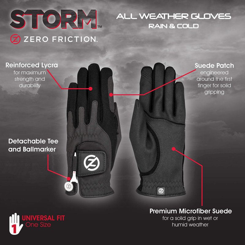 Zero Friction Women's Storm All Weather Golf Gloves, One Size, Black, Pair