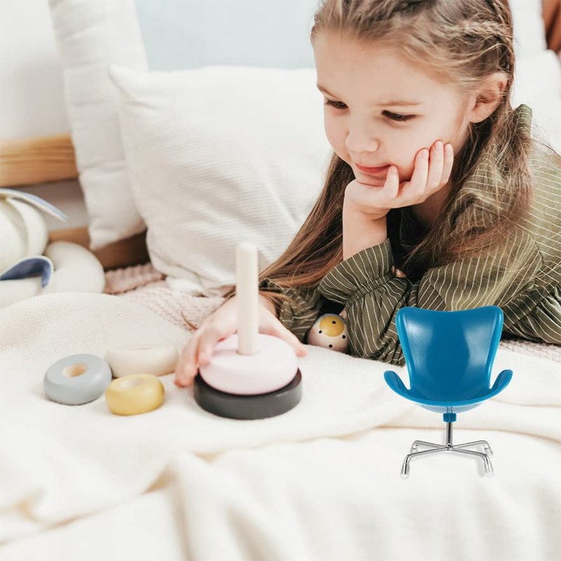 - ?Made of quality plastic material, blue color, chair legs made from silver metal, can be detachable.dollhouse mini chair platic