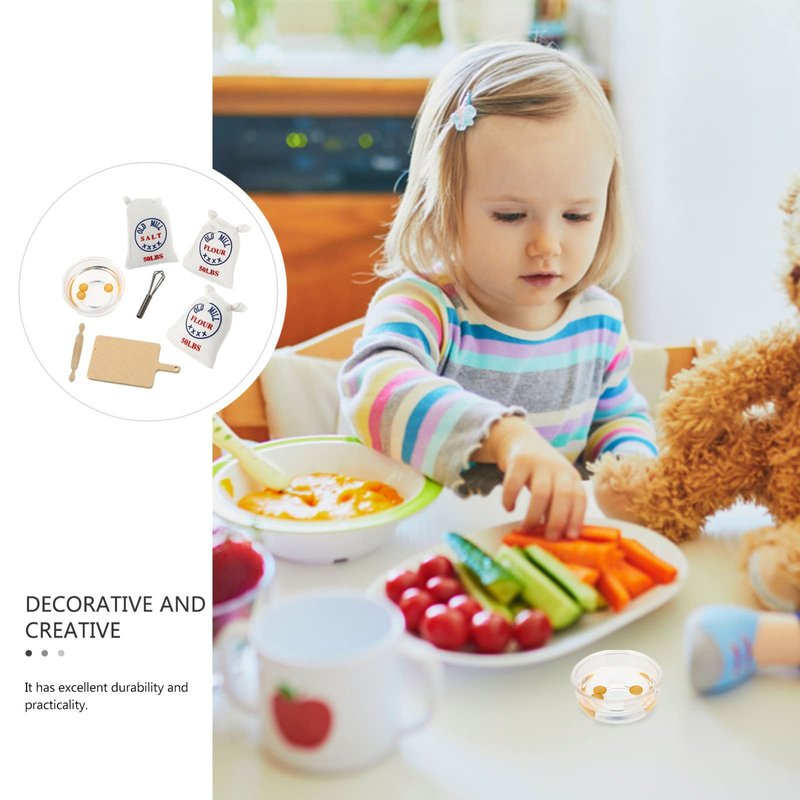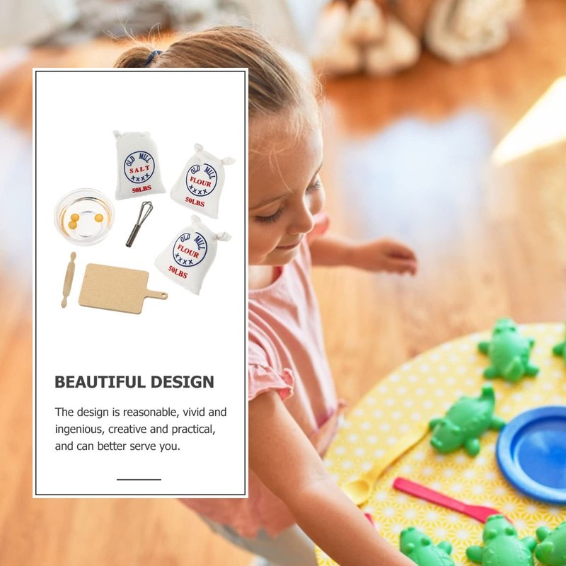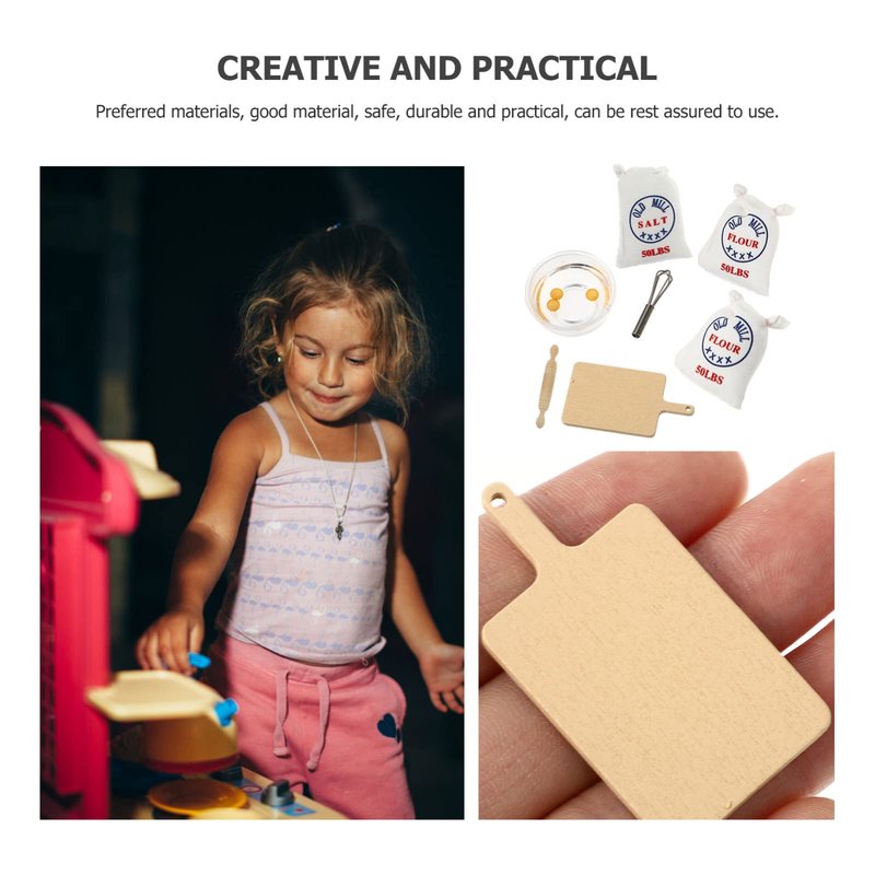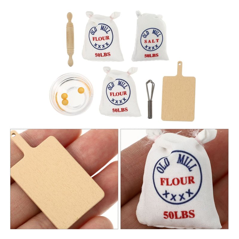Zerodeko 7PCS 1: 12 Dollhouse Miniature Flour Salt Bags Whisk Rolling Egg Simulation Cutting Board Model, Food Baking Scence Bread Making Set for Miniature Food Dollhouse Kitchen Accessories