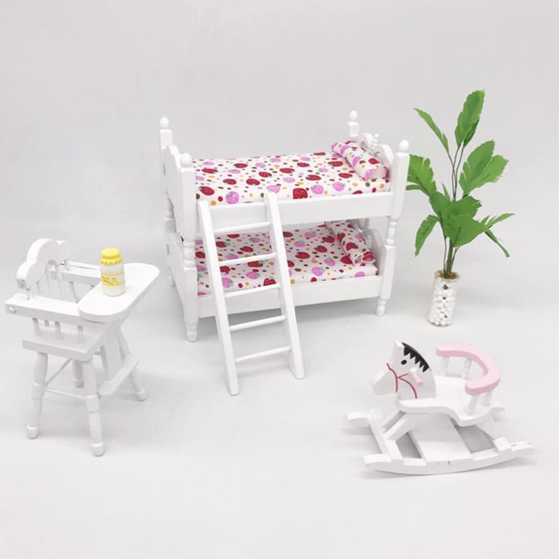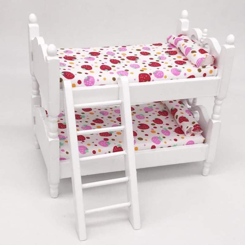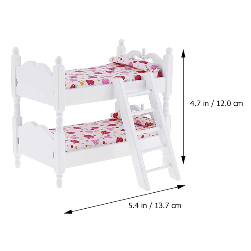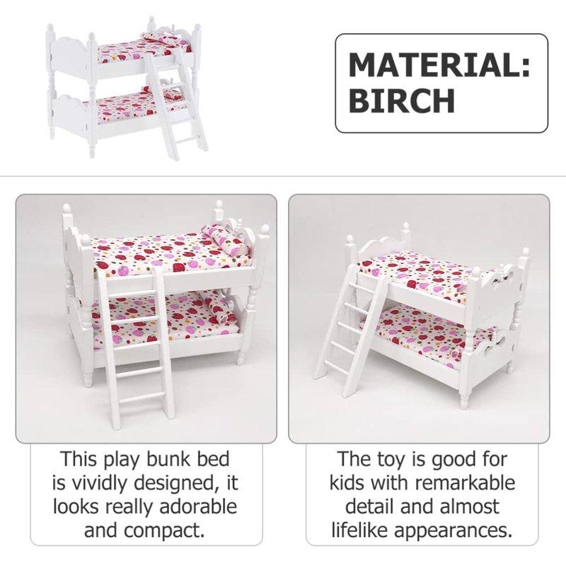 Zerodeko Lps Accessories Bunk Beds Set 1 12 Scale, Doll House Furniture of Bunk Bed with Ladder, Wooden Miniature Furniture Model, Kids’ Bedroom Set Play Toy Sets