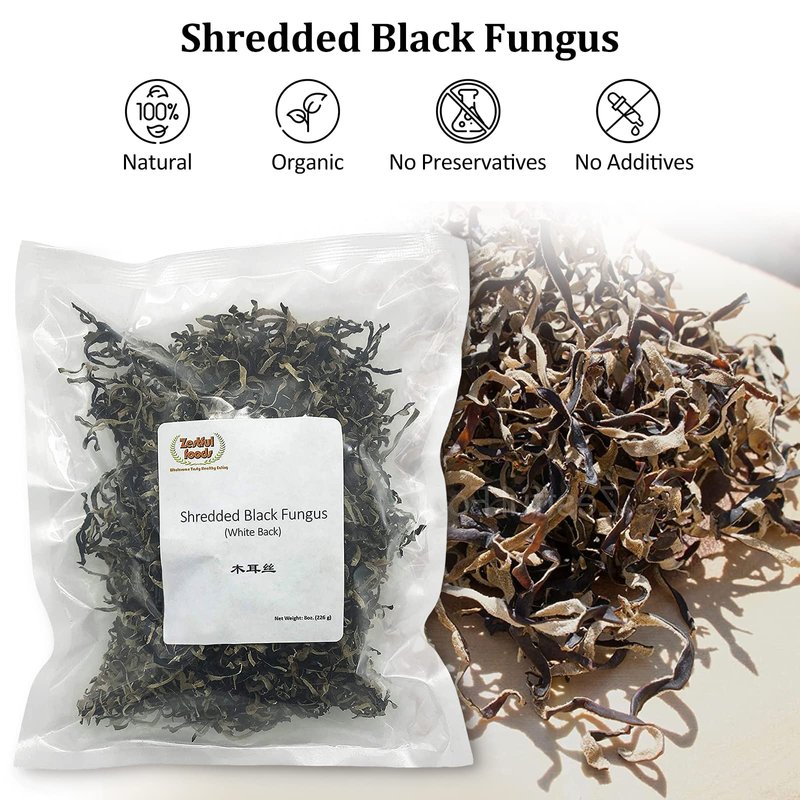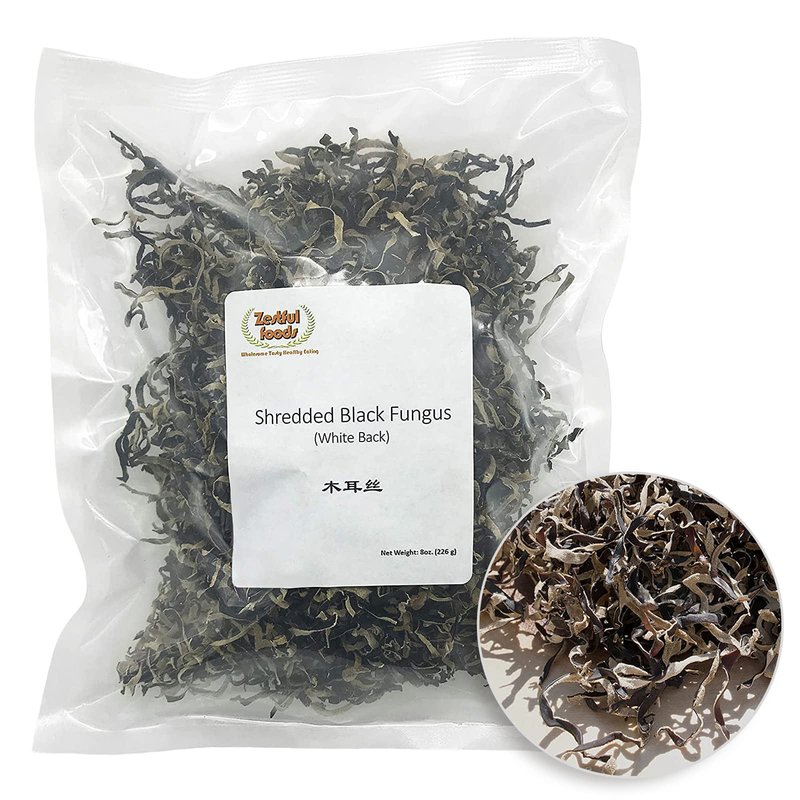 Zestful Foods Shredded Dried Black Fungus (Wood Ear Mushrooms) - 8 Oz, Non-GMO, Vegan, and Gluten-Free - Perfect for Soups, Stir-Fries, and More