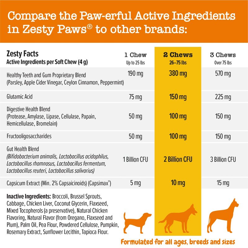 - Gut Health - Each chew includes 1 Billion CFU of Probiotics and seven enzymes to support gut flora, regularity, and overall digestive health for dogs.