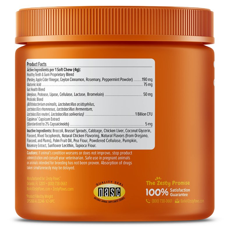 Zesty Paws Chew No Poo Bites for Dogs - Stool Eating Deterrent Soft Chews for Dogs - Gut, Periodontal & Immune System Support - Premium DE111 Bacillus subtilis Probiotic Chicken - 90 Count