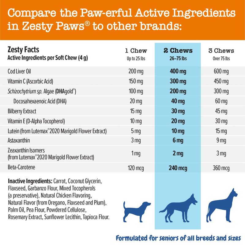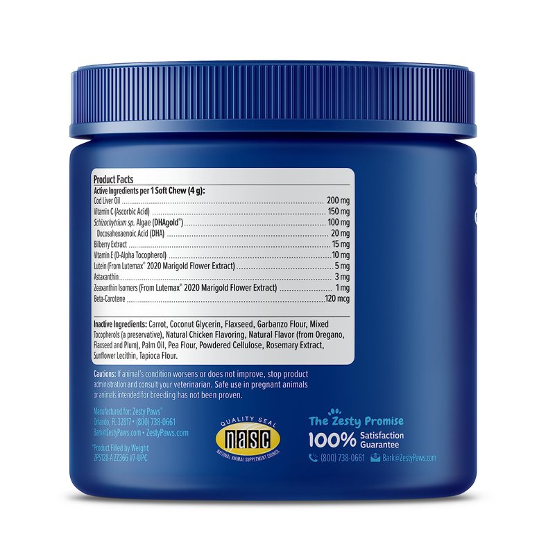- Daily Eye Care Soft Chews - Zesty Paws Senior Vision Bites are chewable supplements designed to promote eye health for senior dogs of any breed or size.