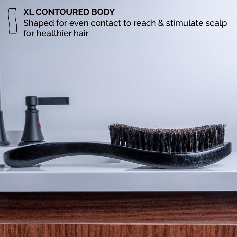 - BEECH WOOD HANDLE: The body and handle of our brush is crafted from solid black lacquered Beech Wood that features a curved handle giving you a more secure grip while in use. We’ve designed it to be curve to compliment the natural shape of your beard or head. The Beech Wood is sturdy and durable providing you with a warp resistant brush. It measures at 9.5"L x 1.5"W | Bristle length: .75"