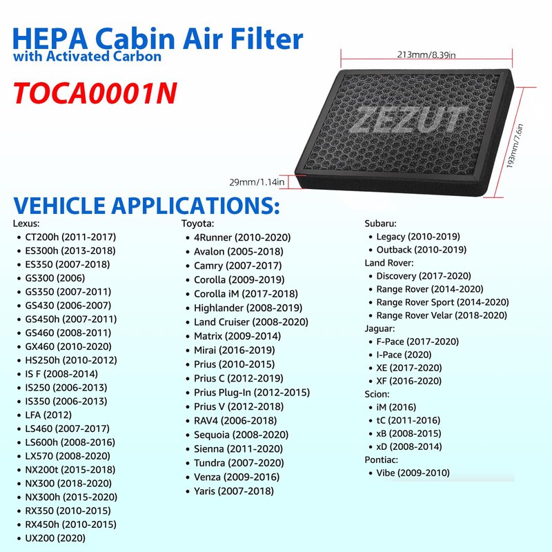 ZEZUT's HEPA-standard cabin air filter, enhanced with activated carbon, effectively purifies and deodorizes vehicle interiors.ZEZUT recommends changing your cabin air filter every 12,000 miles.