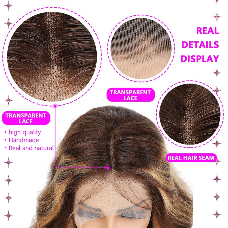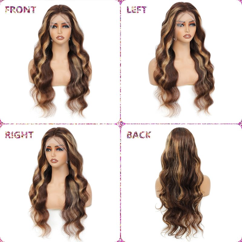 Wig Type: Ombre 4/27 Highlight Wigs, 13x4 Body Wave Lace Front Wigs Human Hair Middle Part Ombre Lace Front Wig Human Hair Material:Unprocessed Virgin Brazilian Human Hair Wigs For Black Women,Human Hair Lace Front Wigs Wig Quality:Soft & Bouncy, No Chemical Smell, Minimum Shedding & Tangling.Can Be Restyled,Bleached And Straightened As You Like Wig Feature:13x4 HD Transparent Lace Human Hair Wigs With Baby Hair Around, Glueless Body Wave Wigs Pre Plucked With Natural Hairline, Lace Front Wigs Human Hair With Lightly Bleached Knots. Wig Cap: 22-22.5 Inch Medium Cap(Average Size), 4 Combs Around & Breathable Wig Cap Wigs For Black Women Human Hair Wig Color:4/27 Color, HD Transparent Lace Color, Sutiable For Most Skins & More Durable. Wig Length: Glueless Wavy Human Hair Wigs-True To Length (If You Want To Measure The Length,Please Measure It From Top To End) Wig Occasions: Can Be Used For Marriage,Date,Valentine'S Day, Halloween, Travel, Work, Daily Life, Attending Dinners, Outdoor Activities, Swimming, Etc Our Virgin Hair Is Collected from Young Girls and Has Not Been Chemically Altered or Processed. It Is Suitable for All Hairstyles and Can Keep Straight Hair Well. It Has No Tangles, Minimal Shedding, Very Clean, Natural, Soft And Easy To Comb. It Can Be Easily Curled, Dyed, Bleached And Shaped According To Your Preferences! High-Quality Real Human Hair Allows You To Style Your Hair In Various Ways To Show Your Beauty And Charm!