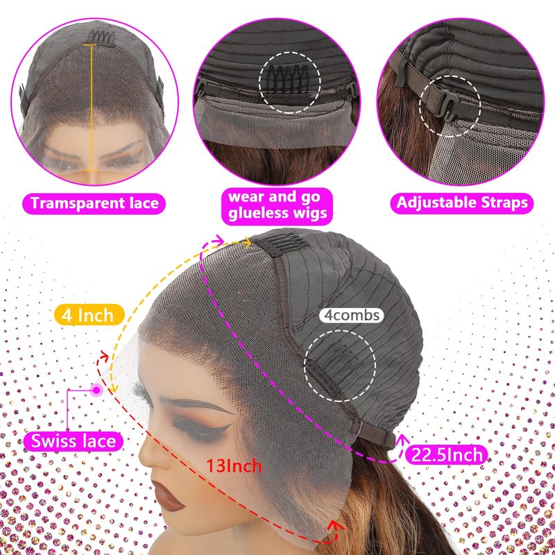 - 【Body Wave Lace Front Wigs Human Hair Quality】: Highlight Ombre 13x4 Body Wave Lace Front Wig 180% Density with 4 Combs and Adjustable Straps, Elastic Bands Fits better and is More Comfortable to Wear. The Large Hand Woven Area of 13x4 inch Can do Any High Ponytail&Bun Hairstyle You Want.Make You More Confident and Attractive.Are You Ready To Accept Compliments From Others?