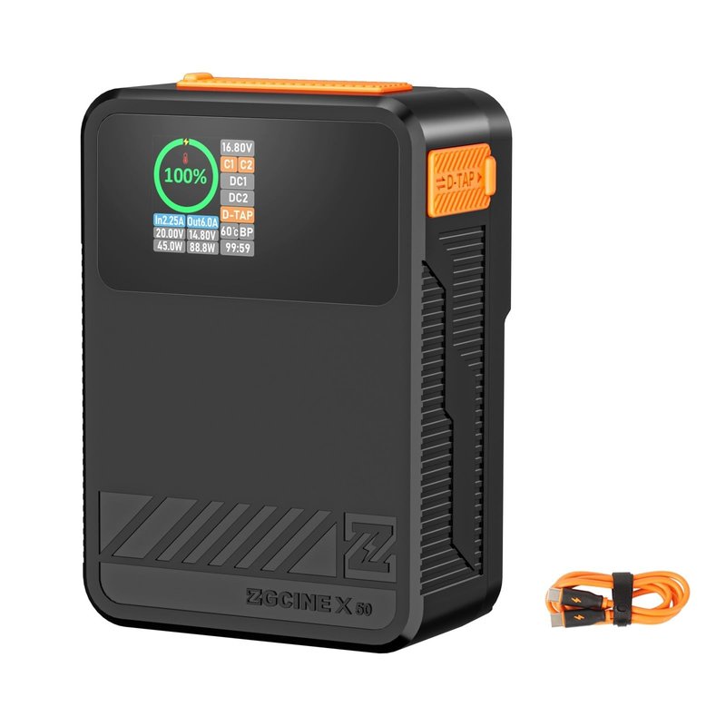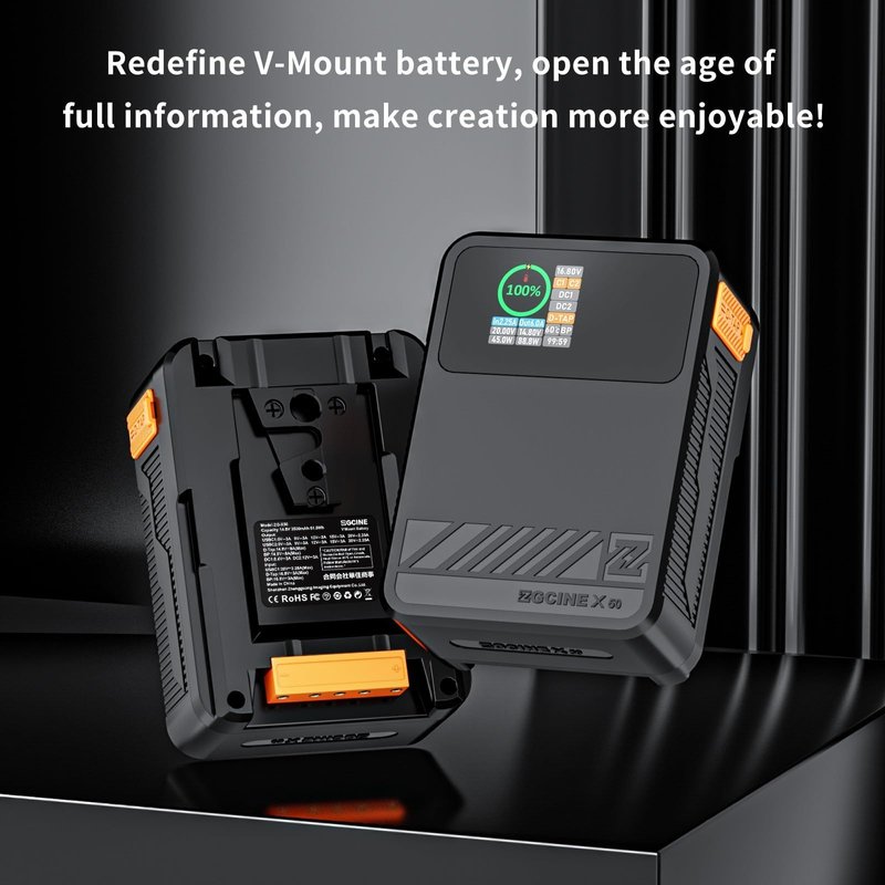 The ZGCINE X50 V-Mount battery is the world's first battery with real-time detection capabilities for any port (including D-Tap and BP ports), equipped with a 1.3 inch IPS screen and full port recognition. Through the display screen, the current, voltage, total power, remaining time, temperature and other information of the battery in use can be clearly seen.You can use the battery to read the power of any device and become a creative tool for creators.
