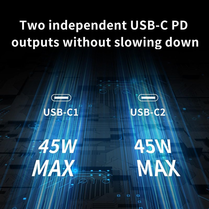 - 💡Adopting a new circuit design, plug and play for enhanced stability. Dual independent USB-C PD outputs enable simultaneous usage without speed reduction. Beautiful appearance with a non-slip design and glass panel.