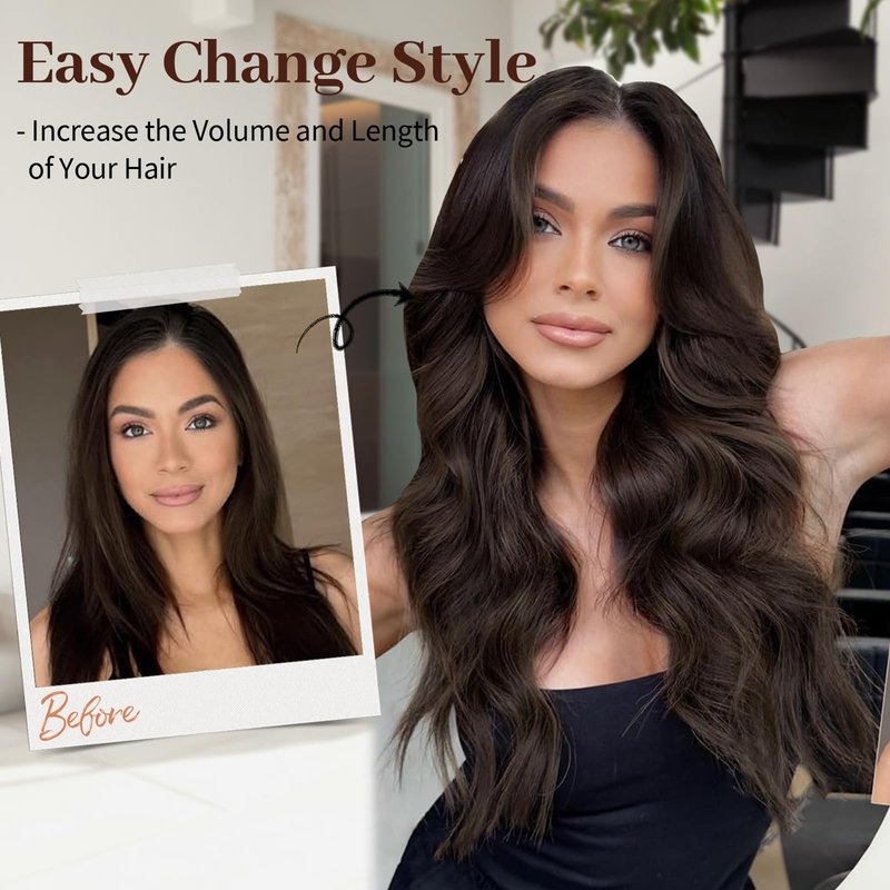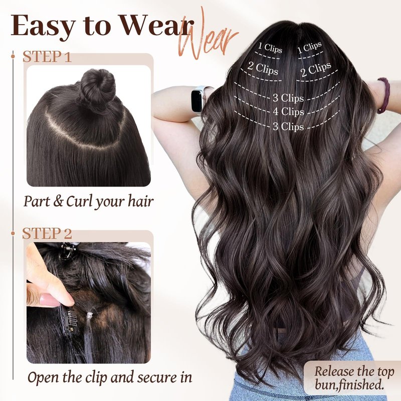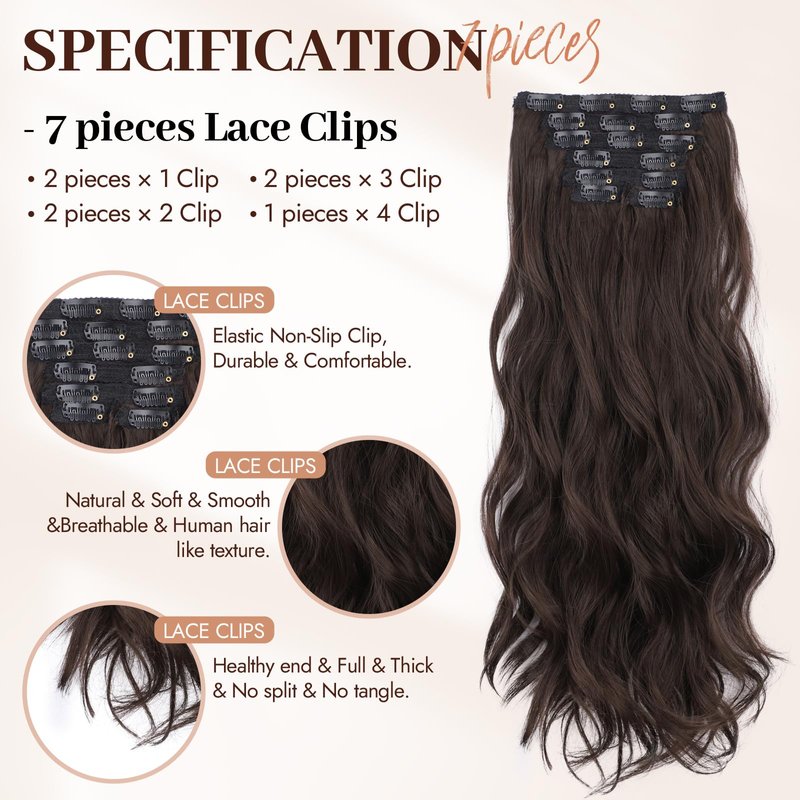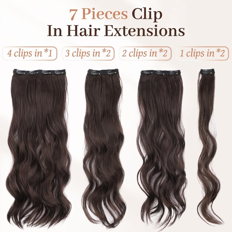 - Versatile 7-Piece Set: This comprehensive kit includes including(2 pieces with 1 clip,2 pieces with 2 clips,2 pieces with 3 clips, and 1 piece with 4 clips), cater to various styling needs. Whether you're looking to boost volume, add length, or create layers, this set makes it effortless, fulfilling your ever-changing hairstyle desires.