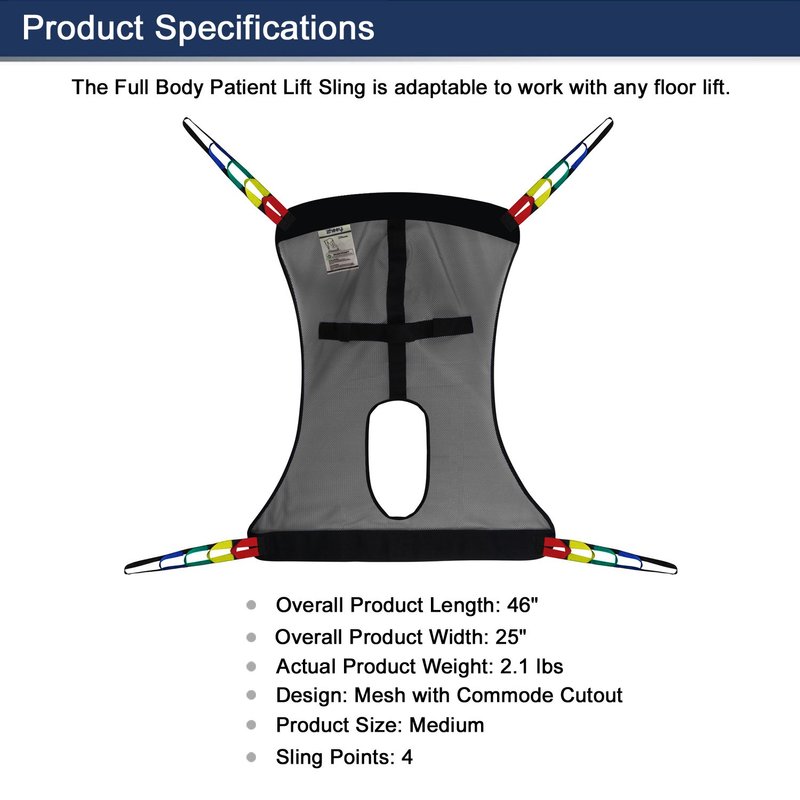 ZHEEYI Full Body Universal Patient Lift Sling Mesh Medium with Commode Opening for Shower Toileting, Gray