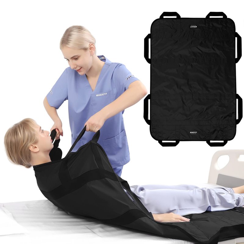 - REPOSITIONING, TURNING & LIFTING MADE EASIER! ► Our double-sided nylon fabric transfer sheet is equipped with 8 heavy-duty reinforced ergonomic handles, allowing the caregivers to assist from any angle. It reduces the physical effort by 90% for caregivers, relieving the overall strain on them. And significant improve the efficiency of home care.