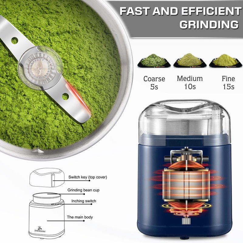 - 🌿EFFICIENT GRINDING METHOD - Equipped with a powerful 200W motor with a speed of up to 30,000PRM (110V,60Hz), it can complete the grinding of 50g of herbs in 3-8 seconds.Compared with the traditional manual grinder, grinding efficiency is improved by 30X. Save a lot of time for you to enjoy the good life!