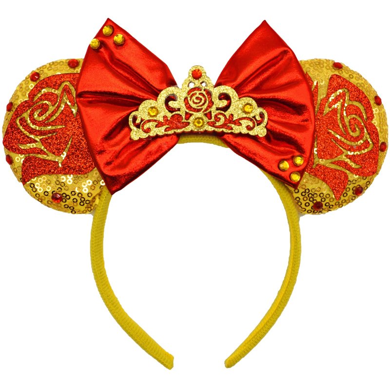 ZHENNAN Mouse Ears Headbands for Women, Glitter Gold Princess Bell Tiara Bows Ears Headbands, Bell Costume Cartoon Themed Events Birthday Party Decorations Hair Accessoires