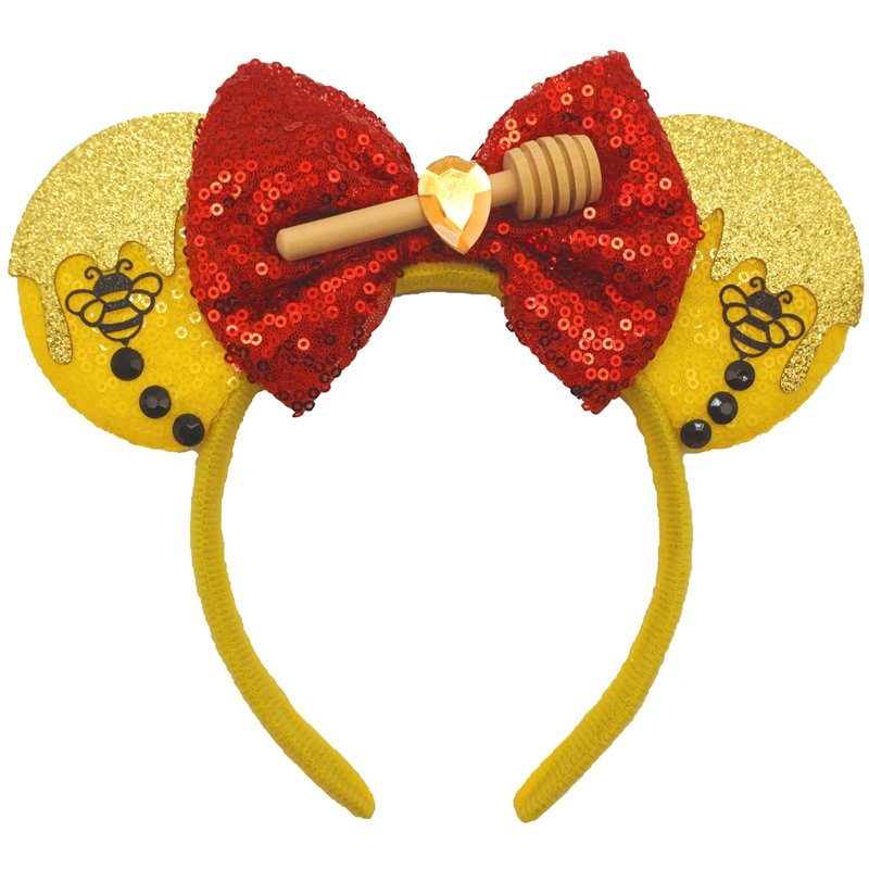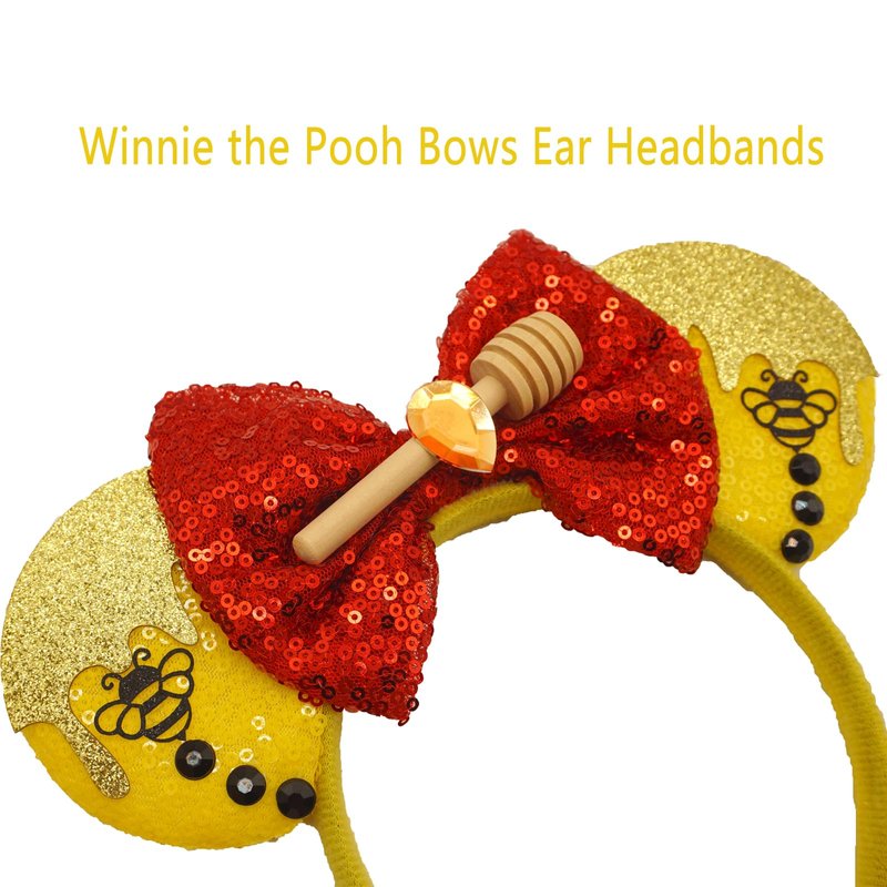 ZHENNAN Mouse Ears Headbands for Women, Glitter Honey Stick Pooh Bear Bows Ears Headbands for Men, Pooh Bear Costume Cartoon Themed Events Birthday Party Decorations Hair Accessoires