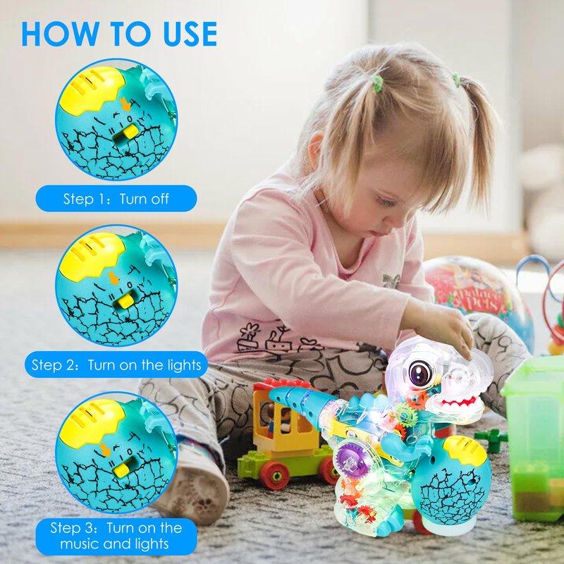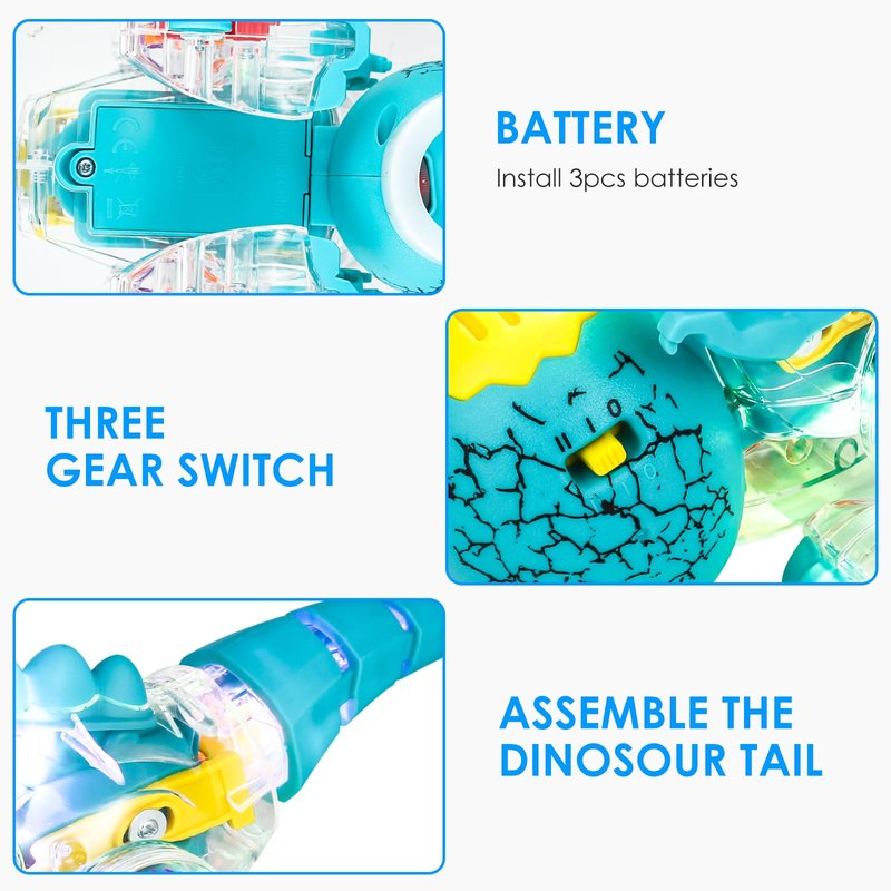 - Ignite Passion and Curiosity: This dinosaur toy can ignite children's passion and arouse their curiosity, taking fun to the extreme, thus creating unique and everlasting memories for kids. Not only does this transparent dinosaur car play music, light up, and move on its own, but it also has colorful gears that spin in a dazzling way that captures your child's attention for hours of fun.
