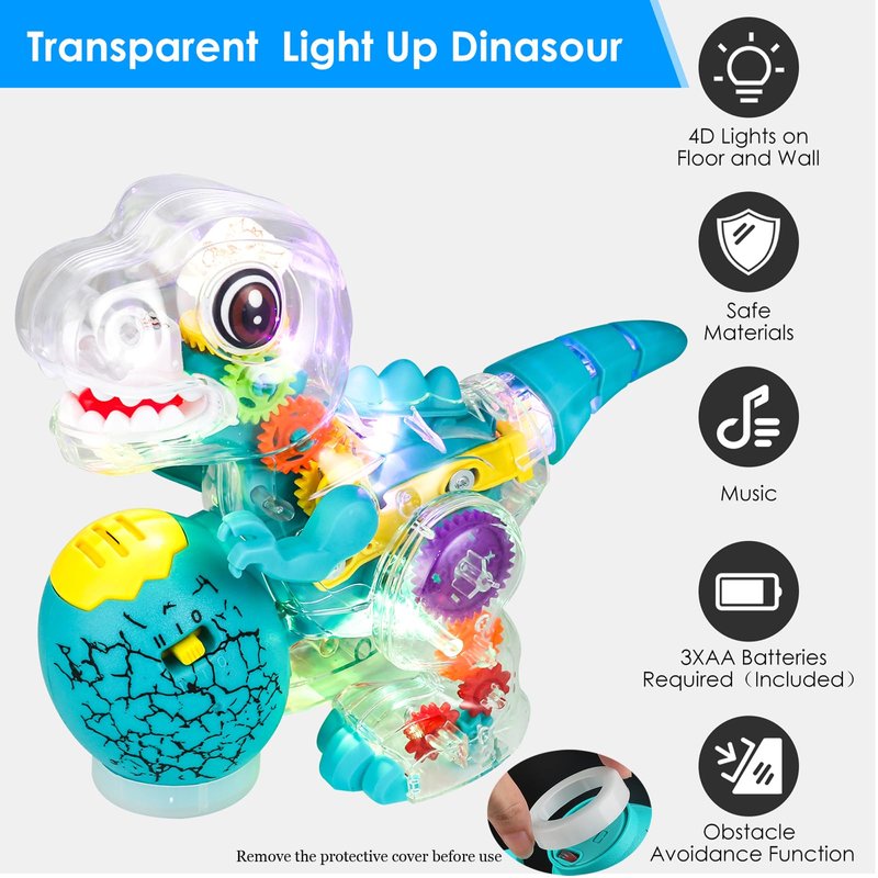 ZHFUYS Light-up Transparent Dinosaur Toy for Kids, Moving Dinosaur Toy with Colorful Gears, STEM Toys for Toddlers,Birthday Gifts Idea for Kids