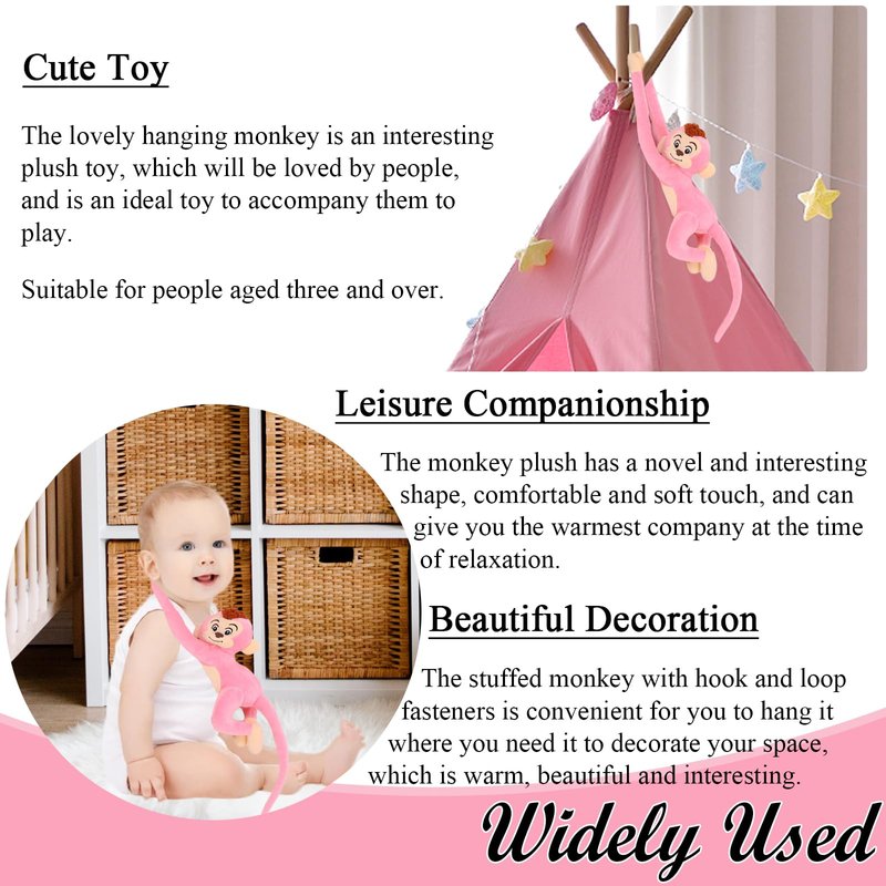 - 【Product Packaging】: The product includes a pink hanging monkey stuffed animal, with a total length of 27.6 inches (70 cm) (from hand to tail). Due to transportation reasons, the product is packaged in a vacuum. Therefore, after opening the packaging, please gently tap and let it stand for a period of time, or expose it to sunlight for a period of time, which is easier to restore the original cuteness of the product.