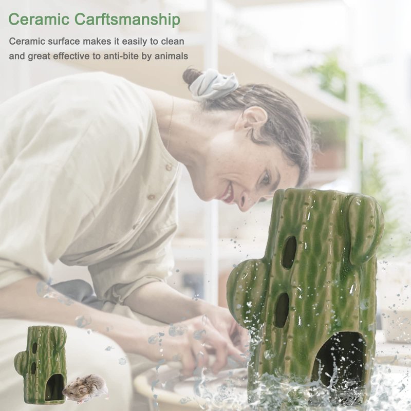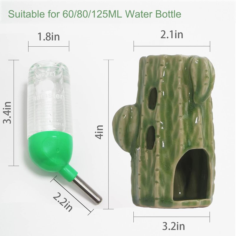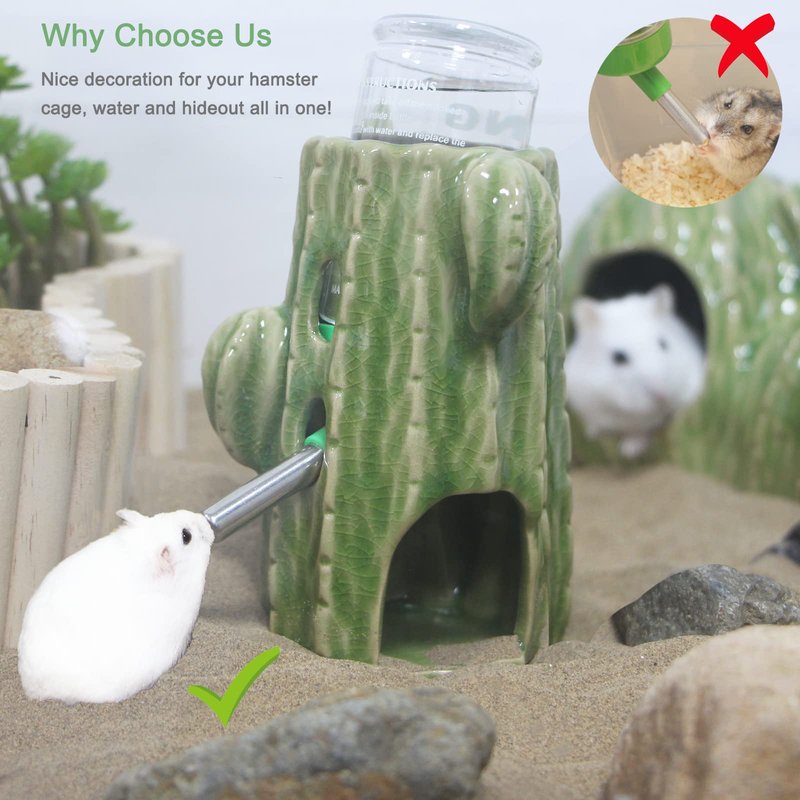 - 【Great Decor for Glass Tank】Our hamster water bottle stand enable you to put the water bottle into any hamster cage you want, especially in a glass tank,terrarium,or your DIY hamster cage. Cute cactus shape stand decorates a vividly desert play-place for your hamster.