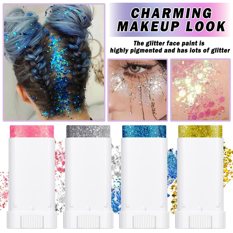 - 【Widely Used】This holographic glitter stick adds special brilliance and sparkle to your makeup, perfect for parties, weddings,Halloween, Christmas, birthdays, carnival makeup use, make you the center of attention.
