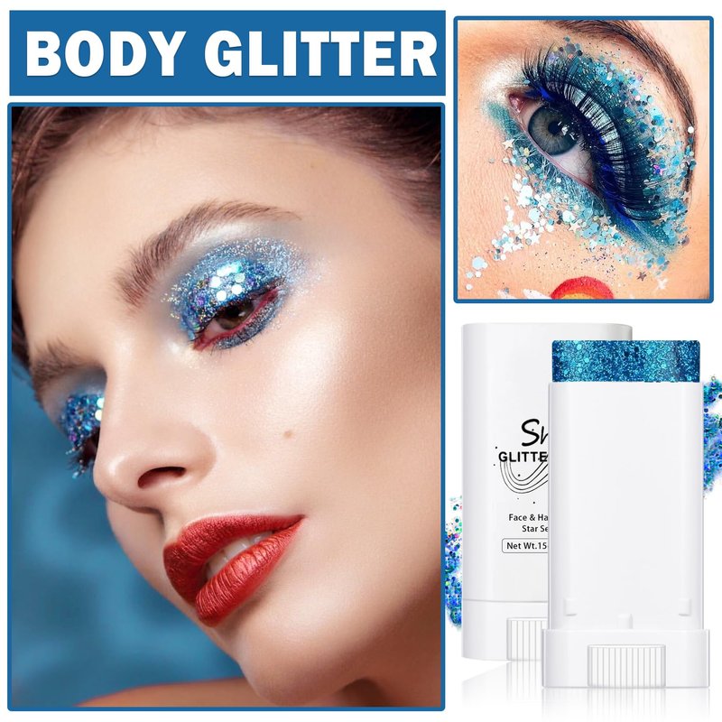 ZHISHUDL Blue Body Glitter Stick for Adults and kids Holographic Shimmer Body Glitter Gel Chunky Sequins Face Glitter Makeup