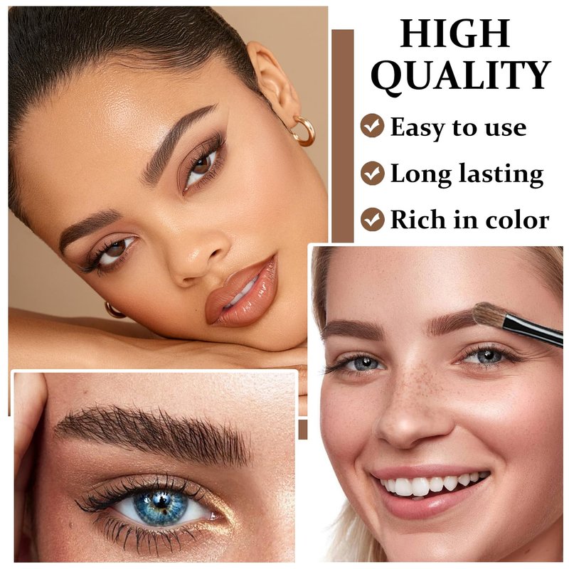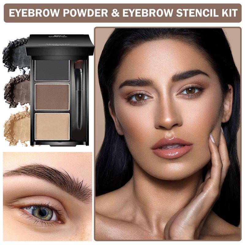 - 【Simple and Easy to Use】Select your favorite eyebrow stamp and align it with the eyebrow position, use three-color eyebrow powder to fill in the color along the natural growth direction, then use an eyebrow brush to adjust the color of the eyebrows, mix the colors, and make the color transition natural.