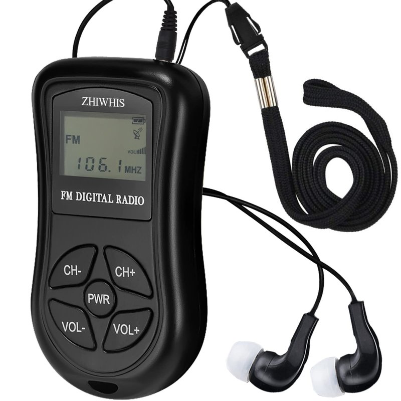 ZHIWHIS Mini Portable FM Radio, Stereo LCD Digital Display Tuning Pocket Walkmen Transistor Conference Receiver with Earphone, Small Pocket Radio Operated by AAA Batteries for Walking/Running