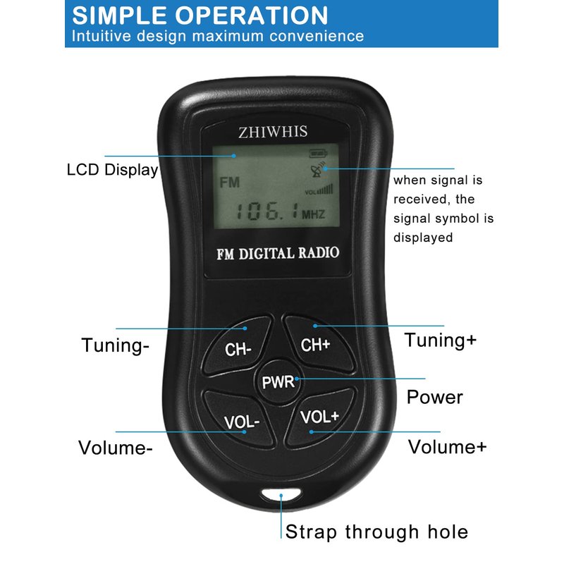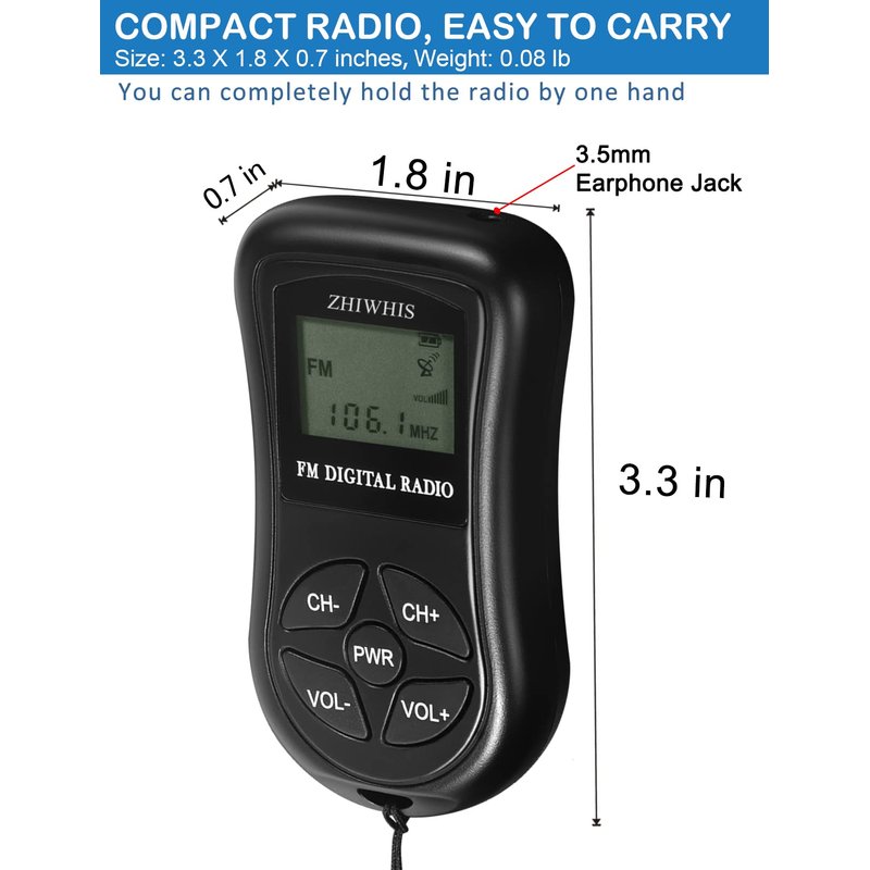 - 【DIGITAL FM POCKET RADIO】DSP digital processing technology chip is adopted, frequency modulation signal reception is stable. With the 3.5mm earphone jack(Earphone is include) , you are free to own some private space to enjoy the radios without disturbing others.