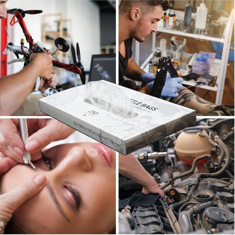 - 250Pcs Tattoo Wash Bottle Bags : 9.8 in * 5.9 in (25cm*15cm) , Disposable Square Transparent Bag.【Not include bottles】