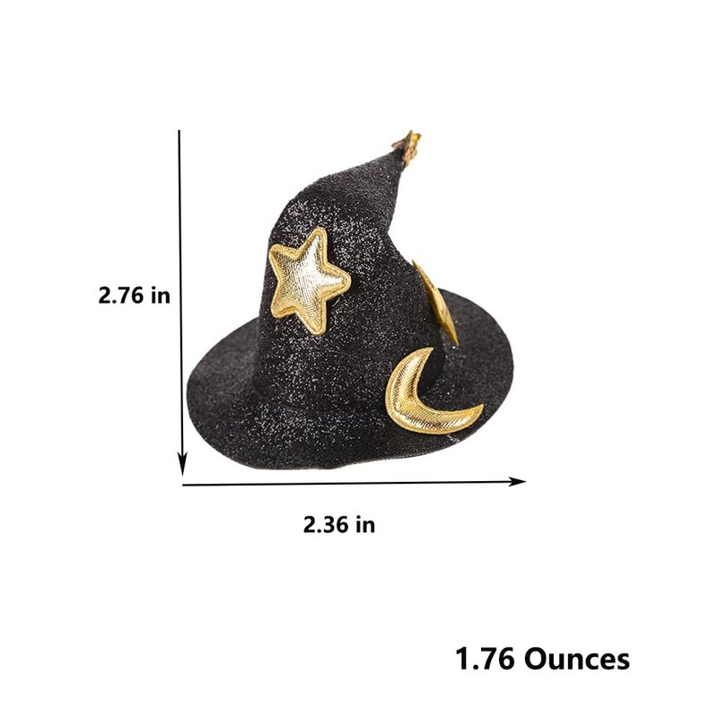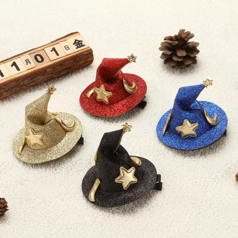 ZHOUMEIWENSP 2Pcs Mini Top Hat Hair Clips Shining Star Moon Halloween Witch Hat Flet Hairpins Hair Barrettes Hair Accessories for Party Performance Props (Blue&Black)