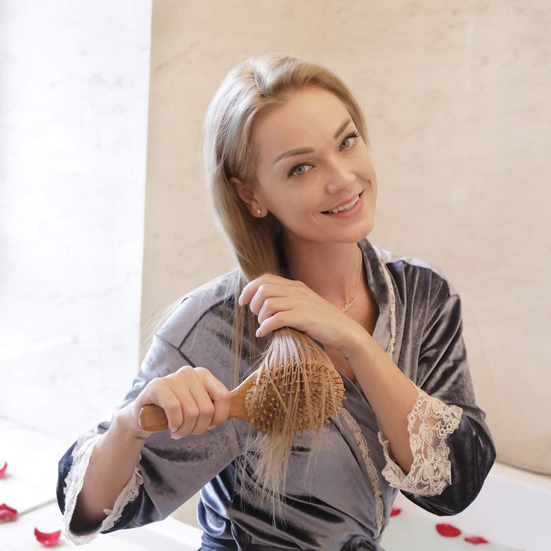 Our Bamboo hair brush are made from bamboo and natural rubber, it is plastic free and eco-friendly. Bamboo or wooden hair brush will help You achieve the healthy, shiny hair that You dream of, by minimizing any pulling, breakage, static or frizz, promoting shine and strength, while treating your scalp and stimulating healthy growth. The round tips of the bristles provide a stimulating scalp massage. Increasing blood flow to the scalp helps nourish and activate hair follicles to increase growth, fight hair loss, treat dandruff and itchy scalp. And of course, gives great relaxation!
