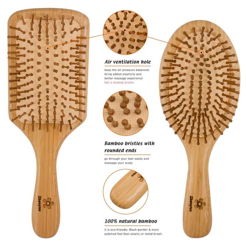 - DETANGLING: Our Bamboo hair brush with wide-spaced teeth less likely to break the hair when combing, high elasticity rubber bladder reduces the pressure of combing, effectively reduce pain, split ends and breakage.