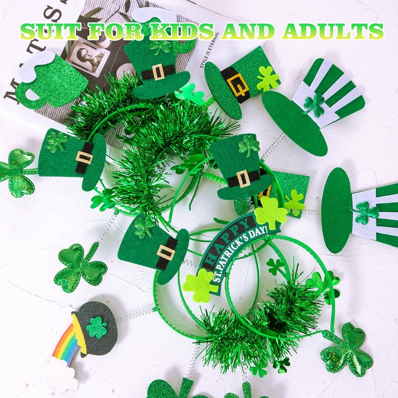 - 🍀【St. Patrick's Day headbands 】- Are you Looking for something special to wear on St. Patty's Day? Check out our amazing green glitter headwear! The St. Patrick's Day shamrock headband can show your Irish style, perfect for entertainment and holiday decorations. This eye-catching clover head boppers accessory is sure to get a lot of smiles and laughter at your parties, parades and events.