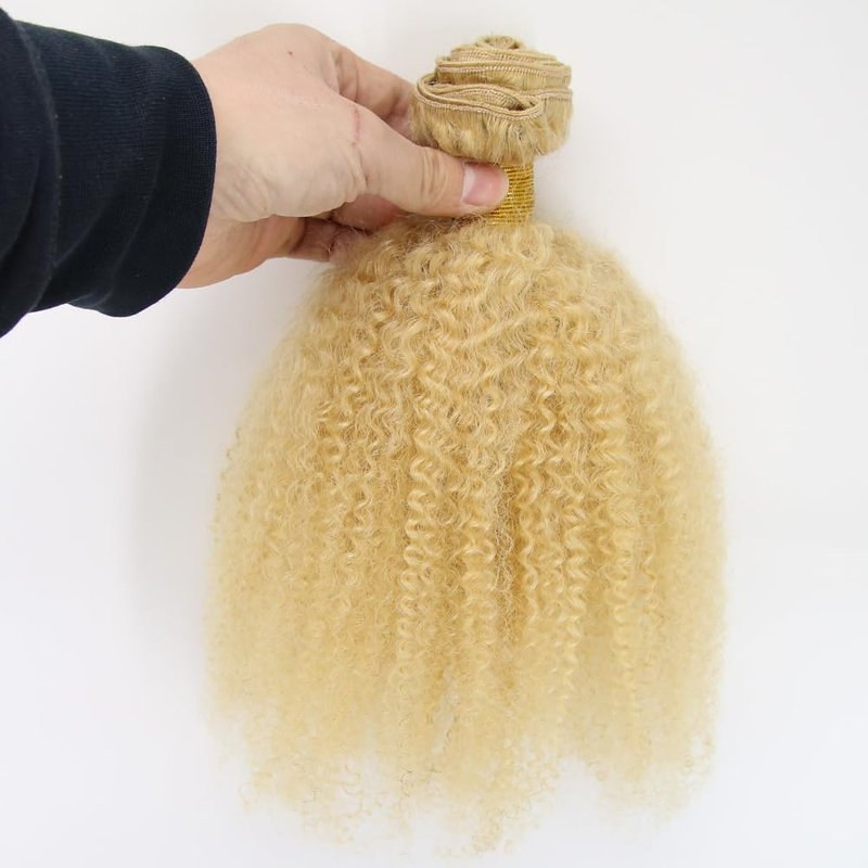 - Afro Kinky Curly Human Hair Bundle Blonde Color 1pc Afro Curly Weft Hair Extensions Human Hair