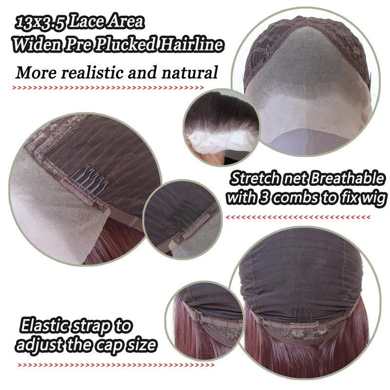 - Cap Size:22.5inch with combs and adjustable straps to help you fix the Lavender lace front synthetic wig pre plucked.
