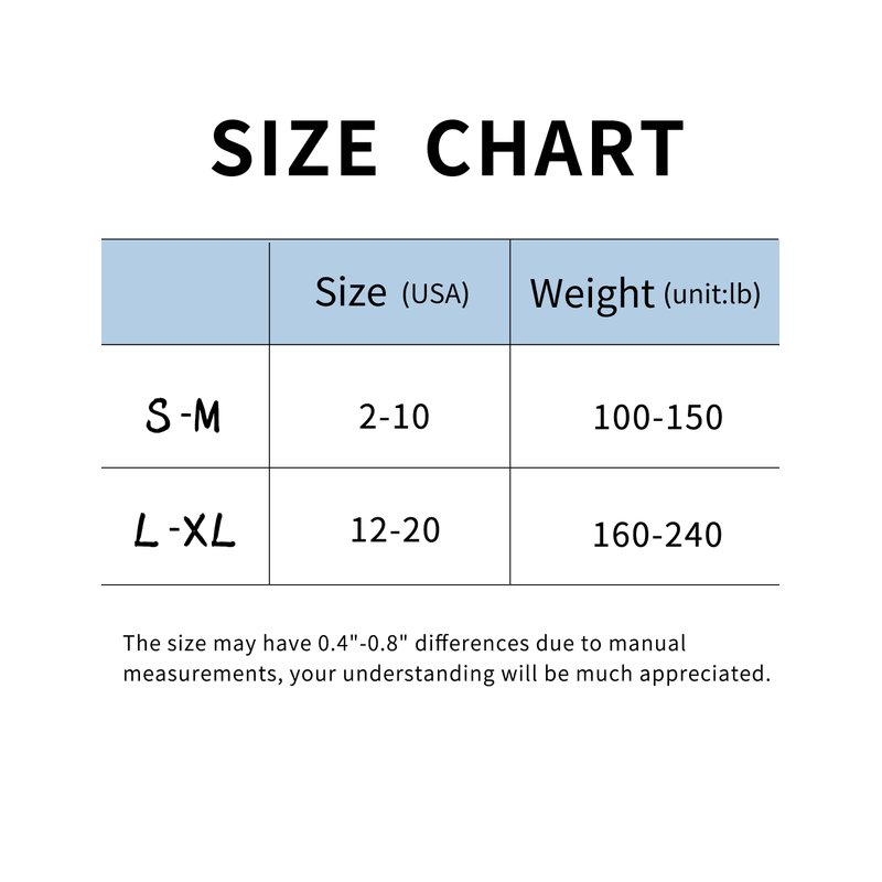 - Size:S-M=USA 2-10;L-XL=12-20.