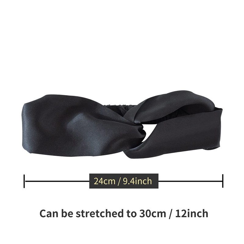 - Fit: Girth: 17". Width: 3"-4", length: 9" can be stretched up to 12". One size fits most people, each silk headband has a silk covered elastic band in back, so it is stretchable and gentle on your hair.(TIP: Not suitable for large head circumference, once it don’t fit you, just feel free to Return&Refund.)