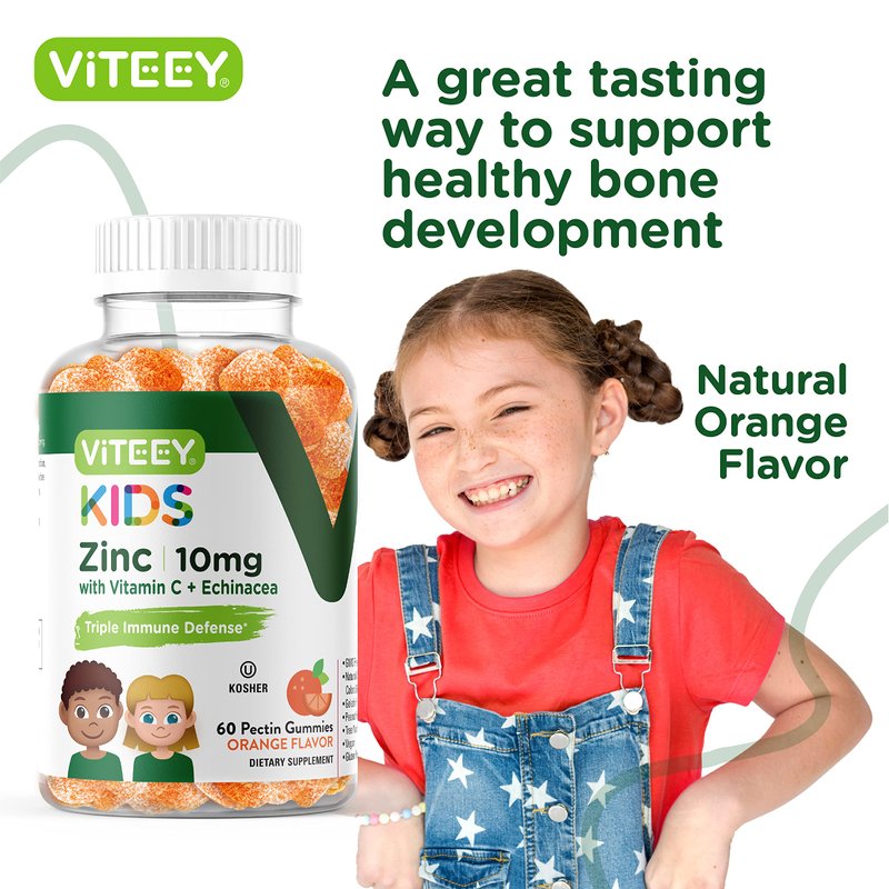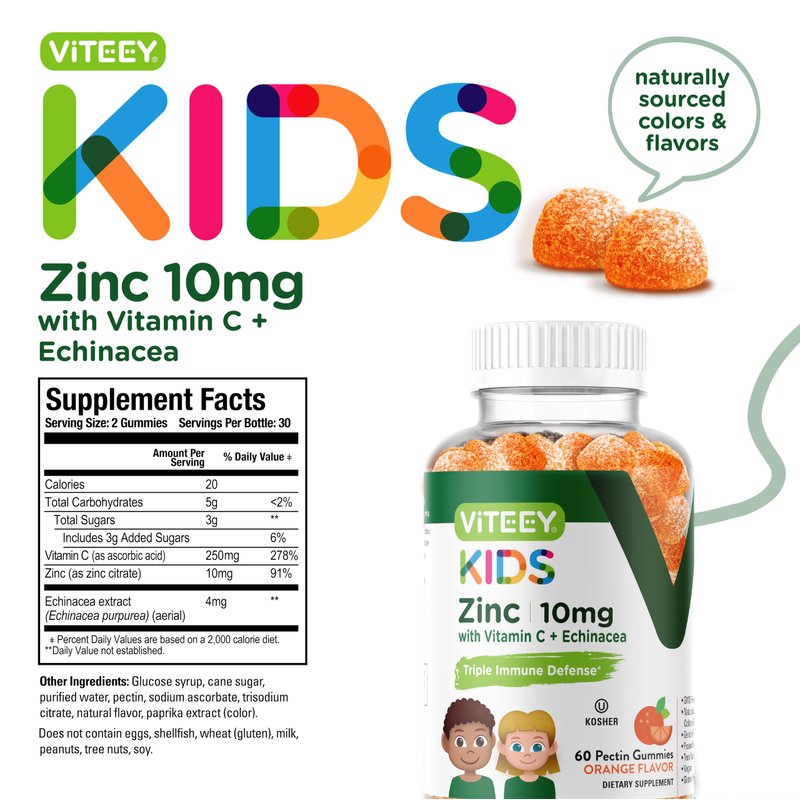 - 3-IN-1 IMMUNITY HEALTH BOOSTER - Our Zinc gummies for kids with Vitamin C & Echinacea deliver the perfect combination that can help boost immunity and overall health. Viteeys Zinc kids gummy ingredients are perfectly formulated and combined for kids and teens. Easy & convenient to take at home or on the go.