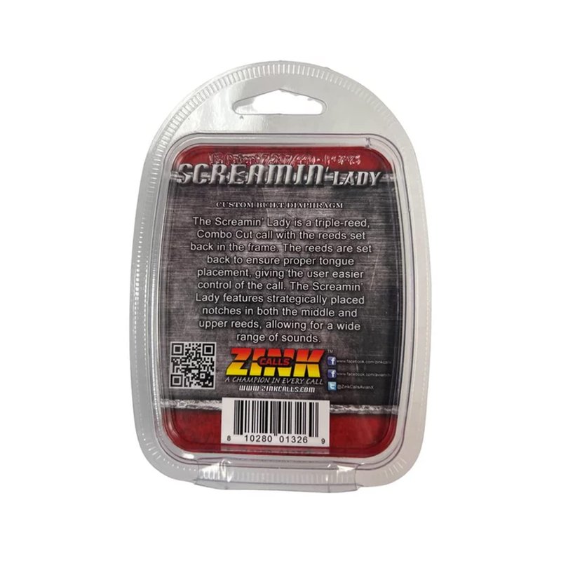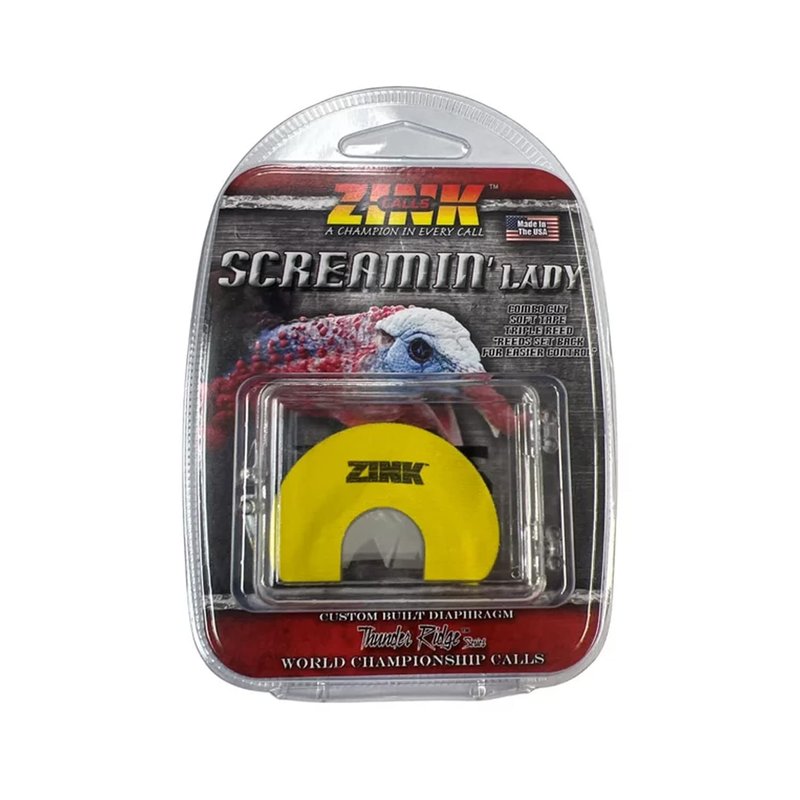 - COMBO CUT - Get ready to turn the head of a hesitant gobbler looking for a mate with the Screaming Lady Turkey Call from Zink - A notched-V style cut is integrated into the middle and upper reeds to offer more versatile calling