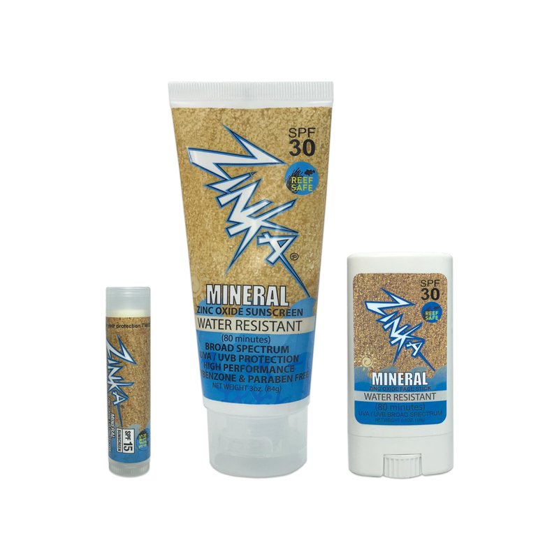 Zinka Sunscreen Personal Pack - Mineral Zinc Oxide for Face, Body, and Lips - Reef Safe and Water Resistant (Lotion SPF 30, Face Stick SPF 30, and Lip Balm SPF 15) - No Chemicals