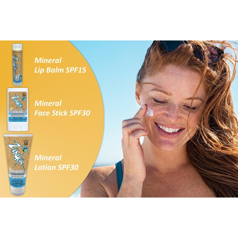 - ZINC OXIDE: Get superior protection with our zinc oxide mineral formula which reflects the sun and is highly water-resistant! Face Stick and Lotion have 20% zinc oxide. Lip Balm has 10.5%.