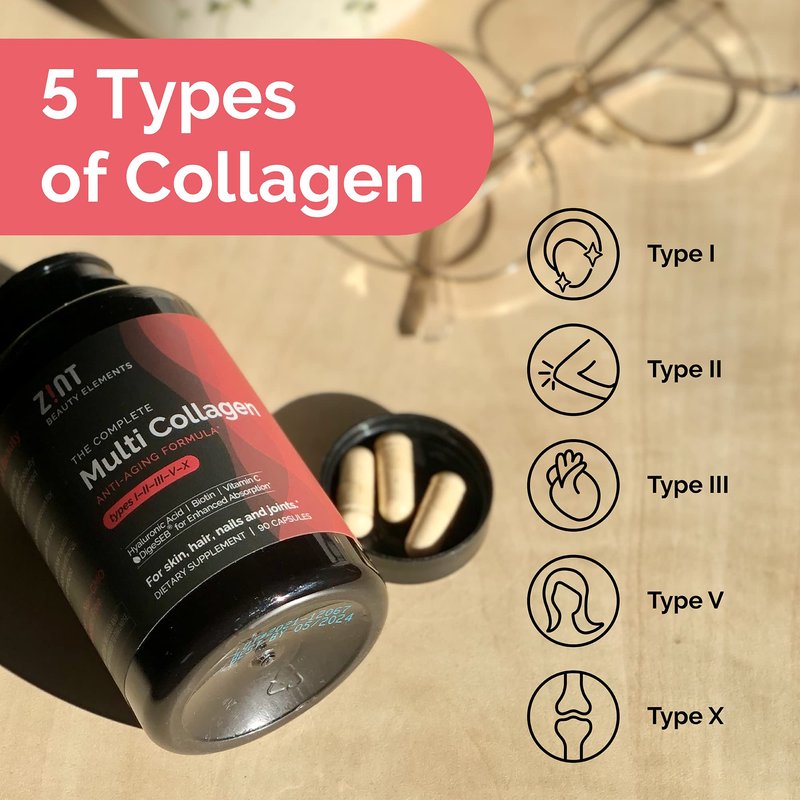 Zint Multi Collagen Pills - Collagen Supplements for Hair, Skin, Nails & Joint Health - Hydrolyzed Collagen Supplement with Type I, II, III, V, X Collagen Peptides, 90 Count