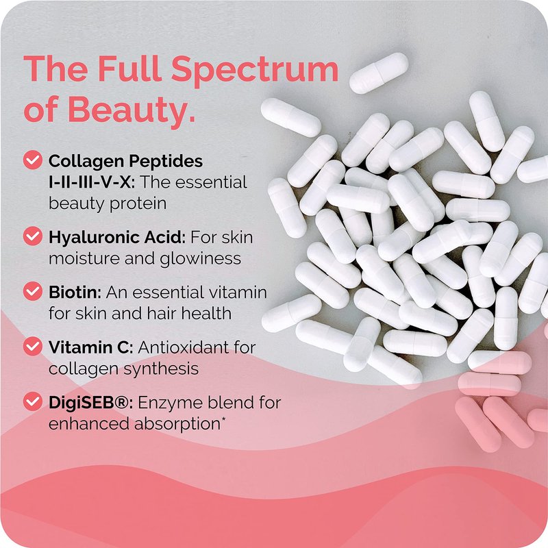 - The Full Spectrum of Beauty Nutrition — Have all your beauty nutrients in one pill to rejuvenate skin, hair, nails, joint & gut health, countering the effects of age and enhancing your natural glow.
